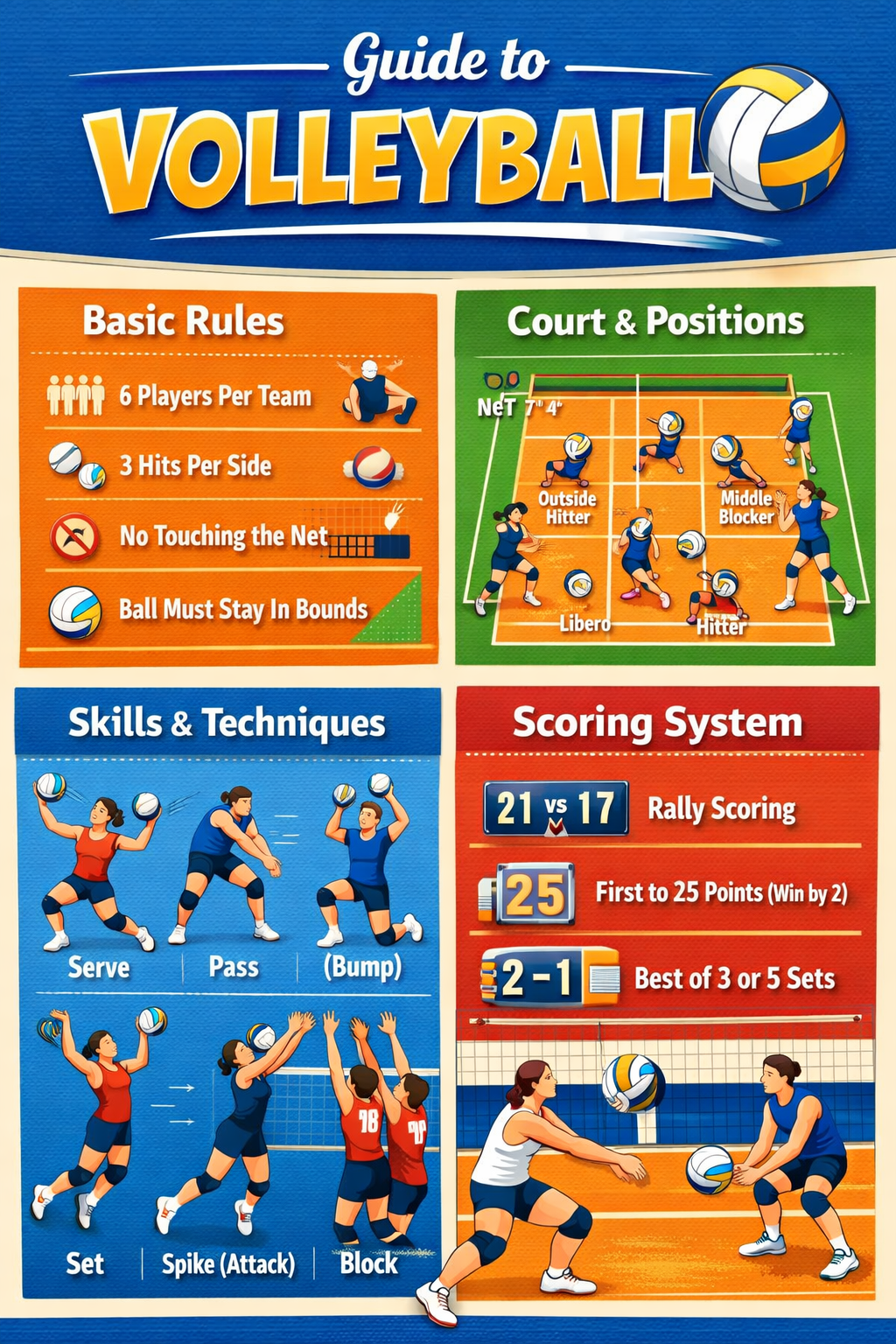 Volleyball is a dynamic game in which each of them plays a different role in offensive and defensive tactics. Play setters have the ability to set plays, outside, opposite hitters to get points, middle blockers to defend and attack faster, and liberos and defensive experts to improve ball control. Knowledge on the volleyball positions will enable players make the most of their strengths, enhance teamwork and enhance the overall performance of the game.